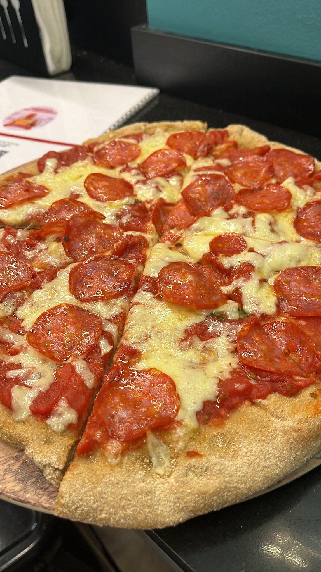 La pizzeria è conosciuta per la pizza al padellino cotta nel forno a legna, preparata con impasto a lunga lievitazione e ingredienti selezionati.